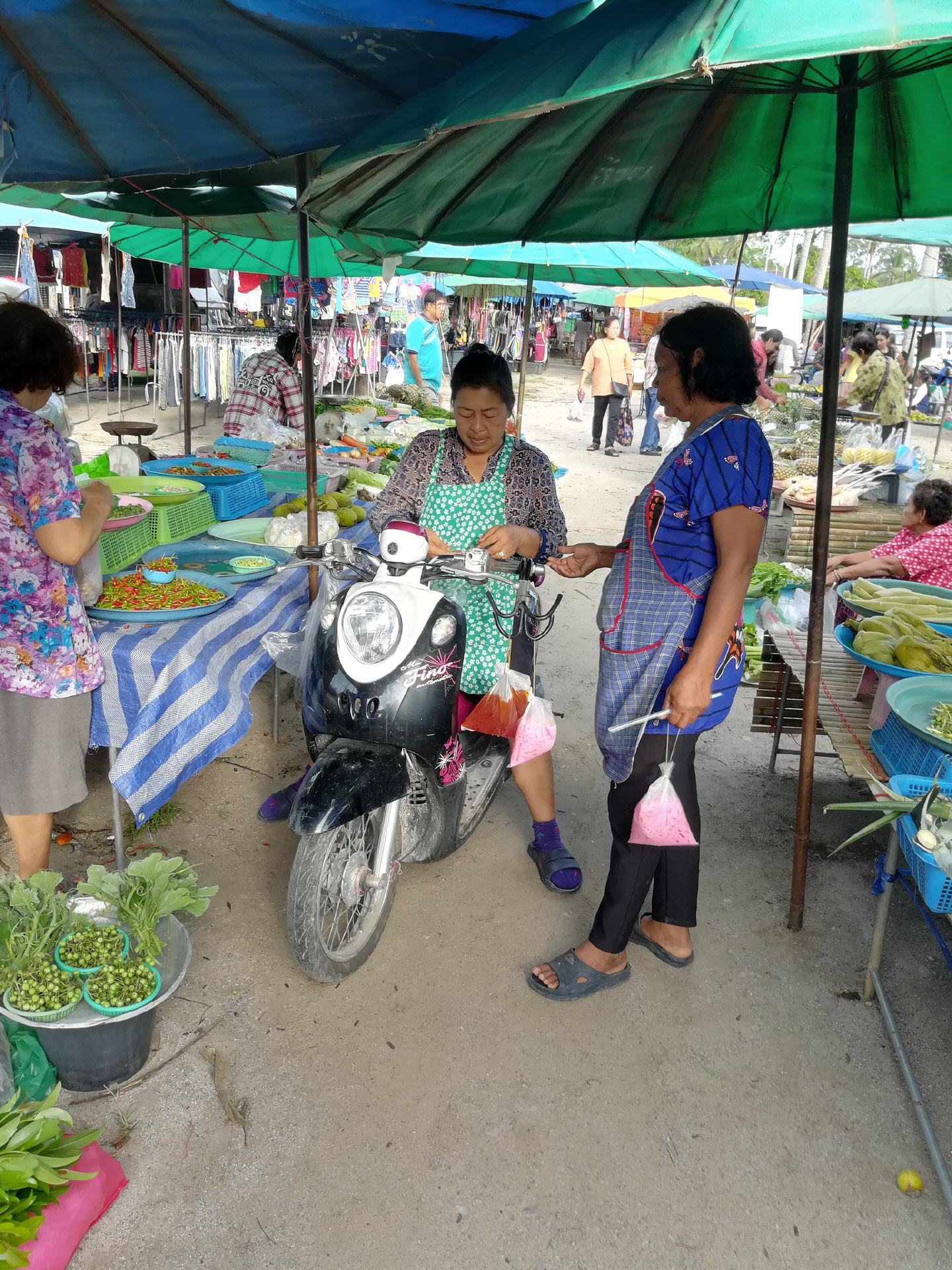 Khuan Thong, dort wo unser Haus steht, ist eine Gemeinde im Landkreis Khanom und hat 10'958 Einwohner, die allerdings ziemlich zerstreut leben. Ein wirkliches «Zentrum» gibt es in Khuan Thong nicht. Zum Einkauf fahren wir darum in der Regel in die Stadt Khanom oder auch mal in den Nachbarort Sichon, wo es Filialen der Supermarktketten «Tesco Lotus» und «Big C» hat. Auch (Zahn-)Ärzte, das Spital, die Post und die Polizei sind in der Stadt Khanom.